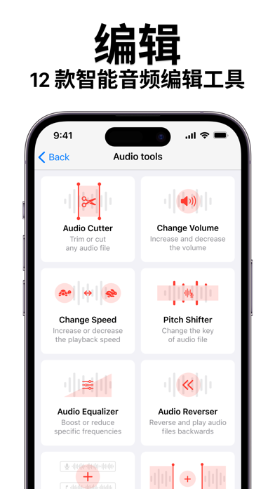 隆重推出我們功能強大的 Voice Recorder 應用,配備音頻編輯工具! 這款應用非常適合需要記錄語音筆記、錄製采訪或創建音頻項目的用戶。使用我們的應用,您可以修剪或剪切任何音頻文件,增大或減小音量,更改播放速度,甚至更改音頻文件的音調。 我們的應用還提供強大的音頻編輯工具,包括增強或降低特定頻率、反轉並倒放音頻文件、將不同音頻文件合並為一條軌道,以及將任意音頻文件插入到現有音頻中。您可以將音頻文件拆分為多個部分並導出,將多個音頻文件合並為一個,並自動從錄音中刪除空白部分或噪音。 使用我們的應用,您可以將所有音頻文件和文本筆記存儲在一個地方。您還可以將語音筆記轉換為文本,並將文本轉換為語音筆記。從 iCloud 或相冊導入,並創建文件夾以安全存儲所有文件。 我們的應用還提供常用語言的語音轉文字功能,並包含內置文本編輯器以創建文本筆記。播放器模塊包含許多功能,例如音頻效果、後台音頻效果、音調設置、分貝級別設置、播放計時器、錄音標記、語音轉文字、AirPlay 功能以及用於實時編輯的完整音頻均衡器。 您可以輕鬆地以多種常見音頻格式共享和導出音頻文件,包括 MP3、WAV、AIFF、FLAC 等。 無論您是記者、音樂家、學生,還是需要隨時記錄語音筆記的用戶,我們的 Voice Recorder 應用配備音頻編輯工具,是滿足您所有錄音和編輯需求的完美解決方案。 使用條款:https://www.team2swift.com/terms-voice-recorder/ 隱私政策:https://www.team2swift.com/privacy-voice-recorder/ 請使用我們的支持表單:https://www.team2swift.com/