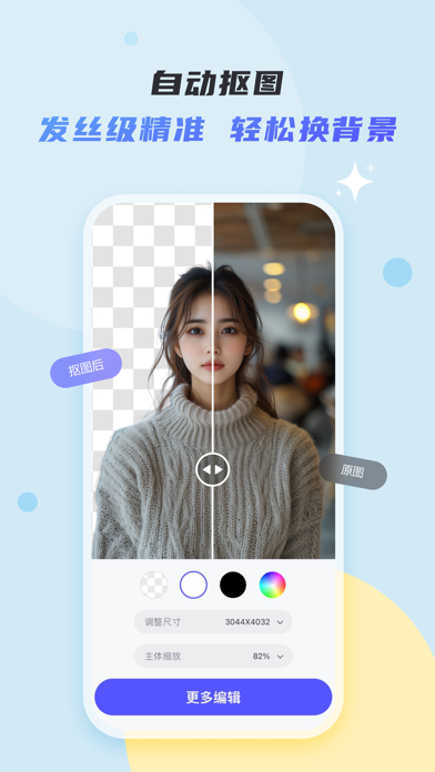 佐糖用AI讓圖片編輯更簡單! 佐糖采用人工智能技術,曆經千萬次的AI圖形訓練,精準識別圖像主體,不用ps,無需任何作圖、修圖技巧,就能一鍵製作出適用於各行各業的精美圖片。 佐糖的功能強大齊全,包括【一鍵摳圖】、【AI消除筆】、【模糊變清晰】、【自製證件照】、【手動摳圖】、【智能換背景】、【修改尺寸】、【一鍵白底圖】、【視頻消除筆】、【美白】、【加水印】、【AI背景合成】、【AI人像背景合成】、【黑白照片上色】、【添加濾鏡】等功能。同時還支持批量摳圖、批量作圖等實用場景,0門檻,0基礎的小白、新手也能夠輕鬆上手,迅速摳圖,為電商設計師、自媒體博主等提供了便捷專業的作圖工具。 在佐糖你可以體驗: 【一鍵摳圖】 佐糖采用AI智能摳圖技術,隻需上傳圖片,智能AI即可一鍵識別圖片主體,將人物/物品主體與背景快速分離,3秒就能實現發絲級精準摳圖。 【疊加摳圖】 佐糖AI照片處理工具除了可以一鍵摳圖,還支持疊加摳圖功能,可同時插入多張圖片在同一畫布進行摳圖,呈現獨特設計風格,輕鬆玩轉社交媒體。 【一鍵調亮】 智能摳圖之後支持一鍵增強圖片亮度,隻需輕輕一點,無論是光線不好還是場景暗淡,都能智能一鍵調亮,讓圖片更加鮮明生動。 【模糊變清晰】 使用人工智能AI學習技術,一鍵模糊圖片變清晰。將原本模糊照片、低像素圖片、老照片,通過AI自動補充畫質細節,一鍵修複,提升圖片質感,恢複舊照片的高清畫質。 【黑白照片上色】 隻需上傳黑白老照片,AI能自動識別照片中的場景或人物,通過複雜的算法和深度學習技術,準確還原照片顏色,重溫過去的美好記憶。 【添加濾鏡】 圖片變清晰後支持給圖片增加濾鏡,佐糖提供了豐富的濾鏡模板,可以輕鬆打造個性化照片風格,讓每一張照片都煥發獨特魅力。 【AI消除筆】 智能消除圖片上任何不想要的部分,包括文字、雜物、汙點、LOGO等一切不想要的東西,隻需簡單塗抹,即可一鍵去除。 【AI背景合成】 隻需要上傳產品圖,AI會智能識別圖片主體,三秒即刻一鍵摳圖,發絲及邊緣輪廓過渡精細。之後會依據模板風格或提示詞要求,在線生成高品質商品圖,打造出令人眼前一亮的視覺效果! 【AI人像背景合成】 是不是覺得日常拍的照片都普普通通?快來試試這個AI人像背景合成功能,隻需要上傳你的人像照片,選擇心儀的模板,就可以創建專屬於你的精美照片! 【AI發型】 快速預覽最適合你的發型!透過AI智慧調整瀏海、發長、發量,甚至整體造型,秒速換發不踩雷。 【加水印】 無論是想對照片進行版權保護,還是想添加獨特的貼紙和文字以彰顯個性,佐糖都能滿足需求。簡單幾步操作,即可輕鬆為圖片添加個性化水印,讓每一張圖都能有獨特的專屬風格。 【自製證件照】 隨時隨地拿手機自製證件照,AI人臉識別技術自動摳圖,更換證件照背景底色,修改證件照尺寸,證件照規格豐富,包含一寸、兩寸、簡曆照、考試報名、各國簽證,並支持自定義背景顏色和尺寸功能,以滿足多種證件照使用場景。新增證件照一鍵模糊變清晰功能,AI自動填補缺失畫質,一鍵製作高清無損證件照。 【修改尺寸】 佐糖AI照片處理工具支持自定義調整圖片和畫布的大小,同時App內還準備了各大電商常用尺寸,淘寶、天貓、拚多多等,應有盡有,一鍵快速設置,一分鍾完成你的每日上新工作,同步完成各大平台摳圖換背景工作。 【批量摳圖】 支持批量摳圖,允許同時30張圖片同步處理,一鍵替換所有圖片底色、調整尺寸,輕鬆應用全部圖片,省時高效。 【智能修圖】 佐糖不僅能夠自動一鍵摳圖,還支持智能手動摳圖,優化邊緣處理效果。也可以通過簡單的塗抹和拖拽,調整圖片的亮度及飽和度,讓圖片在細節方麵更加完善,摳出來的圖片更加完美。 【陰影效果】 批量應用陰影功能,可精準識別多張圖片主體,一鍵添加陰影 ,調整透明度、模糊度等,邊緣更柔和,與圖片融合更自然。 【一鍵白底圖】 很多電商平台和社交平台會用到白底圖片,佐糖AI照片處理工具不但可以智能換背景,還支持一鍵生成白底圖片。將圖片上傳後,先進行摳圖,再點擊白色背景進行應用,就能得到一張白底圖片了。同時還可以使用批量摳圖功能,批量製作白底圖。 【操作便捷,簡單易懂】 佐糖AI照片處理工具的操作過程非常簡單,不需要任何專業的PS技巧,幾秒鍾就能完成摳圖、作圖。新手和小白能快速學會一鍵摳圖,告別ps的繁雜操作,專業設計人員可以使用佐糖輔助摳圖,減少重複摳圖,工作效率成倍提升,省時又高效! 【保持畫質清晰】 佐糖AI照片處理工具在自動一鍵摳圖的同時,會保持圖片的原有分辨率,不會損壞圖片的畫質,讓圖片和原來一樣清晰。 ==玩轉佐糖== 【批量白底圖】 電商行業,離不開摳圖。每年的618/雙11/雙12,逃不脫的透明底圖、白底圖……用佐糖一鍵批量製作白底圖,還貼心配備各大電商平台常用尺寸,一鍵生成,作圖效率飛升。 【照片修複】 拍照手抖,相冊裏一大堆糊圖,或者說家裏有很多老照片,需要高清修複的都可以在佐糖實現一鍵模糊變清晰!點擊上傳,等待3秒即可一鍵還原高清圖片。 【考試報名照】 網上報名考試證件照擔心審核不通過?用佐糖自製證件照!包含常用證件照尺寸,及所需背景顏色,一鍵自製高清無損證件照。 【打造爆款宣傳圖】 無論是電商主圖、產品攝影、商業設計、品牌傳播還是提供創意方