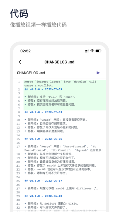 GitViewer 更現代的 iOS、iPadOS 和 macOS Git 客戶端。 功能 * 你需要的 Git 功能: 克隆、同步、拉取、推送、合並、切換分支、檢出、曆史記錄、比較... * 查看提交曆史圖。 * 輕鬆管理 SSH 密鑰。 * 像視頻一樣播放文件修改。 * 支持 GitHub、GitLab、Gitee、Bitbucket、Gogs 等多個 Git 托管服務。 * 自動與 iCloud 同步。