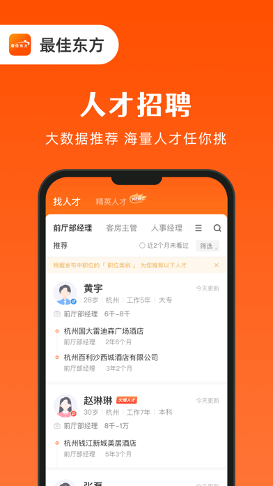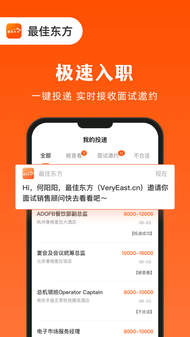 下載最佳東方APP,開啟您的職業新旅程! 最佳東方--作為酒店、餐飲、休閑娛樂、康養及美業領域的招聘求職找工作平台,擁有超過20年的深厚行業積澱和642萬活躍用戶的支持。選擇最佳東方,意味著選擇了信任與品質。我們榮獲了包括"艾裏緹斯"獎在內的多項榮譽,如"中國酒店業公信力品牌"、"中國酒店業影響力招聘品牌"、"中國酒店價值招聘品牌",並且連續多年被評為"中國行業百強網站"。 【即時溝通】隨時隨地與企業HR交流,讓求職更有效率 【職位搜索】智能關聯搜索,找工作更精準 【職位推薦】完善簡曆資料,智能推薦相關職位,求職更省心 【投遞中心】實時查看簡曆動態,接收麵試通知,把握好機會 【誰看過我】企業看過你的簡曆?求職跳槽so easy 【安全求職】企業審核嚴格,設有企業屏蔽功能,完全保障您的個人隱私 最佳東方集成了更快更新的職位信息,實時更新旅遊、酒店、餐飲、美業等行業專場招聘會信息,目前已覆蓋北京、上海、廣州、深圳、成都、杭州、南京、武漢、天津、西安、重慶、青島、沈陽、長沙、大連、廈門、無錫、福州、濟南、寧波、昆明、蘇州、鄭州、長春、合肥、南昌、哈爾濱、常州、煙台、南寧、溫州、石家莊、太原、珠海、南通、揚州、貴陽、東莞、徐州、大慶、佛山、威海、洛陽、淮安、呼和浩特、鎮江、濰坊、桂林、中山、臨沂、鹹陽、包頭、嘉興、惠州、泉州、三亞、贛州、九江、金華、泰安、榆林、許昌、新鄉、舟山、慈溪、南陽、聊城、海口、東營、淄博、漳州、保定、滄州、丹東、宜興、紹興、唐山、湖州、揭陽、江陰、營口、衡陽、郴州、鄂爾多斯、泰州、義烏、汕頭、宜昌、大同、鞍山、湘潭、鹽城、馬鞍山、襄樊、長治、日照、常熟、安慶、吉林、烏魯木齊、蘭州、秦皇島、肇慶、西寧、介休、濱州、台州、廊坊、邢台、株洲、德陽、綿陽、雙流、平頂山、龍岩、銀川、蕪湖、晉江、連雲港、張家港、錦州、嶽陽、長沙縣、濟寧、邯鄲、江門、齊齊哈爾、昆山、柳州、紹興縣、運城、齊河、衢州、太倉、張家口、湛江、眉山、常德、盤錦、棗莊、資陽、宜賓、赤峰、餘姚、清遠、蚌埠、寧德、德州、寶雞、牡丹江、阜陽、莆田、諸暨、黃石、吉安、延安、拉薩、海寧、通遼、黃山、長樂、安陽、增城、桐鄉、上虞、遼陽、遵義、韶關、瀘州、南平、滁州、溫嶺、南充、景德鎮、撫順、烏海、荊門、陽江、曲靖、邵陽、宿遷、荊州、焦作、丹陽、麗水、延吉、延邊朝鮮族自治州、茂名、梅州、渭南、葫蘆島、婁底、滕州、上饒、富陽、內江、三明、淮南、孝感、溧陽、樂山、臨汾、攀枝花、陽泉、長葛、漢中、遼陽、四平、內江、六盤水、安順、新餘、牡丹江、晉城、自貢、三門峽、赤峰、本溪、防城港、鐵嶺、隨州、廣安、廣元、天水、遂寧、萍鄉、西雙版納、綏化、鶴壁、湘西、鬆原、阜新、酒泉、張家界、黔西南、保山、昭通、河池、來賓、玉溪、梧州、鷹潭、欽州、雲浮、佳木斯、克拉瑪依、呼倫貝爾、賀州、通化、陽泉、朝陽、百色、畢節、貴港、麗江、安康、通遼、德宏、朔州、伊犁、文山、楚雄、嘉峪關、涼山、資陽、錫林郭勒盟、雅安等全國數百個城市地區,貼心實用,輕鬆實現隨時隨地找工作。 找工作,就上最佳東方! 讓我們共同創造美好未來。 如果使用過程中有任何問題或建議,請聯係我們: 服務熱線:400-826-0101 官方網站:www.veryeast.cn 官方微博:最佳東方 微信服務號:最佳東方